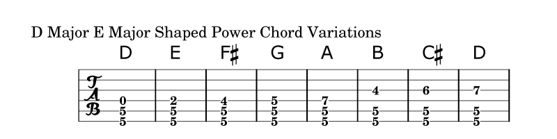 10. E major shaped power chords (with variations)